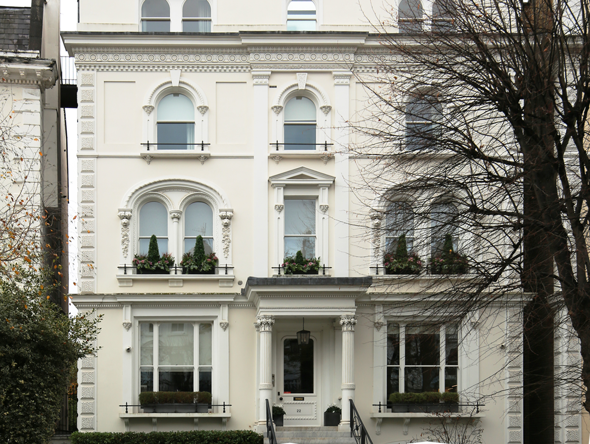 Pembridge Crescent is a mid-19th-century residential property positioned on the south side of Pembridge Crescent, within the designated Pembridge Conservation Area. The building forms part of a coherent group of substantial stucco-fronted detached and semi-detached villas that exemplify the area’s characteristic scale, consistent façade hierarchy, rhythmical fenestration, and unified materiality.