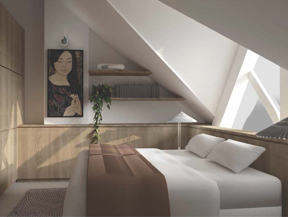 The design centred on a full internal reconfiguration to optimise space across all levels, alongside a loft conversion with a modest rear dormer. The dormer, clad in lead with dark-framed aluminium glazing, is carefully scaled and set in from the roof edges, ensuring it remains subservient to the existing roof form in line with conservation guidance. A new glazed gable at second-floor level draws natural light deep into the interior, while conservation rooflights introduce additional daylight without compromising the building’s historic character.